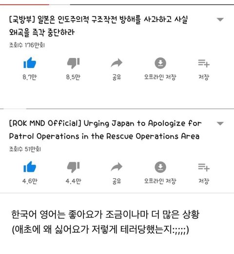 그리고 이게 누구 잘못인지 분간이 안간다 단순히 나라끼리 싸우는 짓 아니냐 하는 사람들 때문에 쓰는 건데 국방부 채널 들어가서 우리나라어로 올린 영상 끝까지 다 보고 오시길 바랍니다