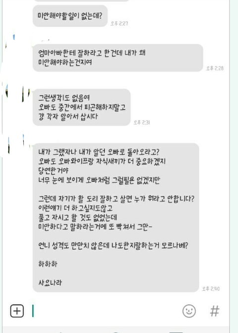 자기 기분나쁘다고 오빠한테 할말안할말 해놓고