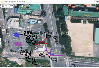 강아지 이동 경로 입니다(패닉상태일 때의 기억이라 정확하지 않을 수도 있어요ㅠ)