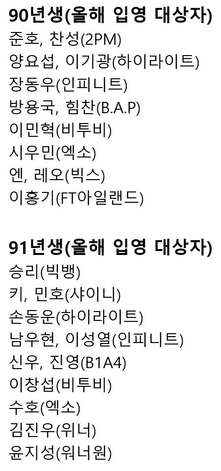 올해와 내년 군입대 해야 되는 남자 아이돌들