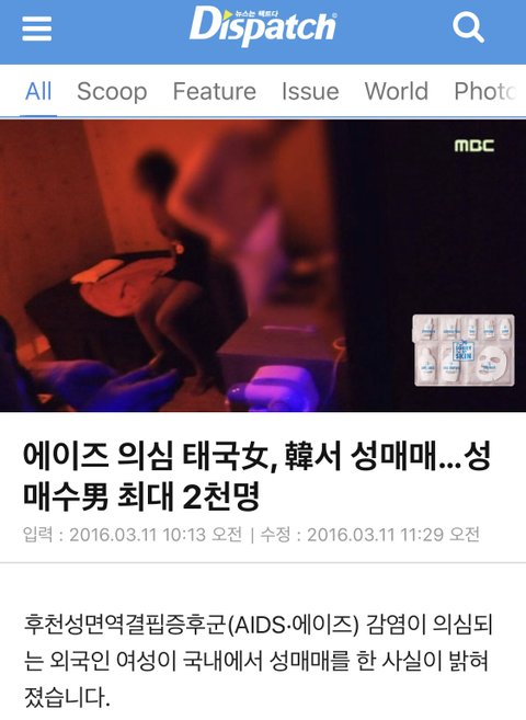 에이즈 감염 의심 태국 매춘녀가 인천에서 3개월간2000건의 성매매를 했답니다.