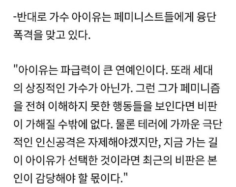 아이돌이라도 페미니즘을 안하면 비판받아야한다.