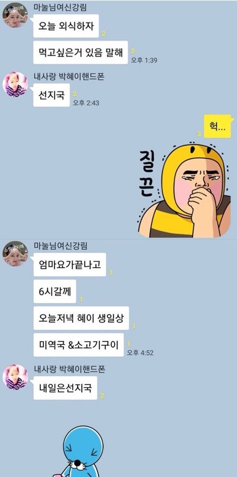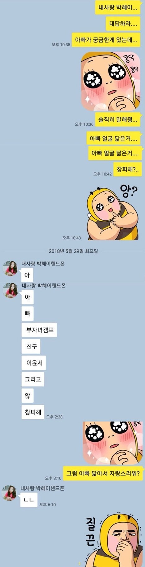 개그맨 박준형과 둘째딸의 카톡대화가 잼있어서 함 올려봐