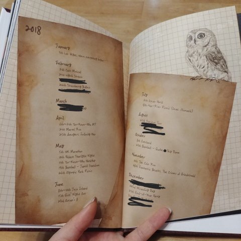 그리고 이건 거의 마지막 페이지에 있는 건데, 1년 동안 우리가 월별로 놀러 다녔던 기록임