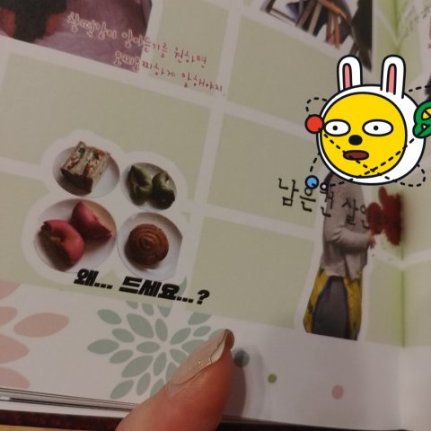 어디에도 넣기 애매하지만 차마 버리기에는 아까운 웃긴 사진들은 마지막에 다이어리 스티커처럼 잘라서 살뜰히 넣어 줬음