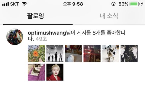 나는 왜 옵티머스황이 멤버들 계정 팔로우 한 거랑 좋아요 누르는 거 안뜨지?ㅠㅜㅠㅜㅜ