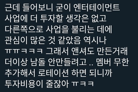다른쪽 사업 불리는데 신경쓰고 있어서ㅠㅠ
