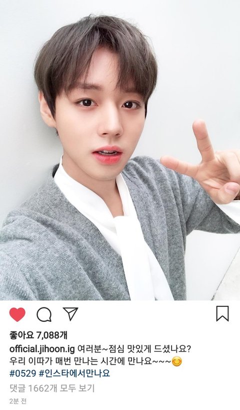 인스타에 이렇게 매번만나는 시간 529에 만나요! 예고하고 진짜 5시 29분에 인스타라방함ㅋㅋㅋ 말투좀봐 귀여워 (지훈이 생일이 5월 29일임)