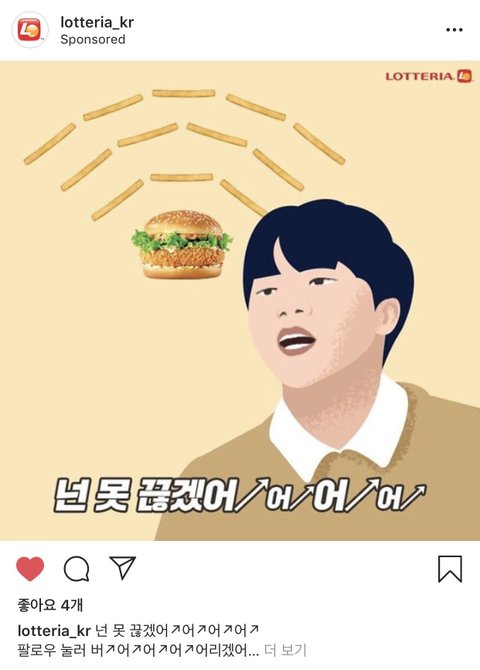 롯데리아에서 광고로 등장ㅋㅋㅋㅋ