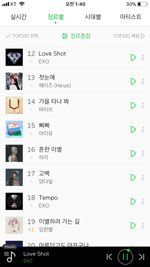 차트 일간 1위부터 18위까지 변동 1도없음ㄷㄷ 우리도 유지잘하고 있네 ㅋㅋㅋㅋ