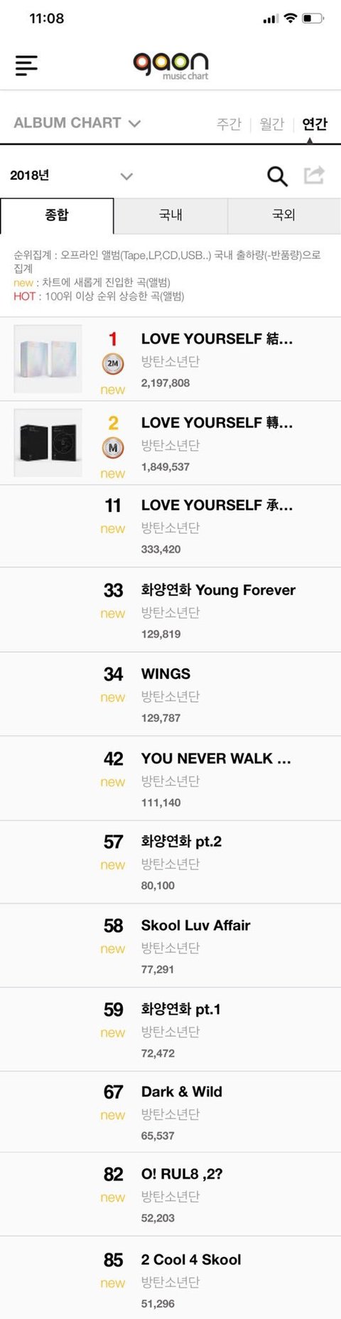 가오프 2018 연간차트봄???
