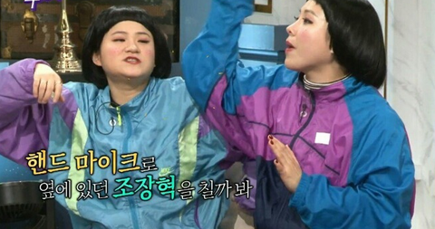 옆에 있는 조장혁을 마이크로 칠까 봐