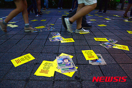 메르스 관련 & #39;박근혜 퇴진& #39; 전단지 살포 메르스 확산에 대한 정부 대응 논란이 일고 있는 가운데 5일 오후 서울 마포구 홍대입구역 인근 또 종로 거리에 박근혜 대통령 퇴진을 요구...