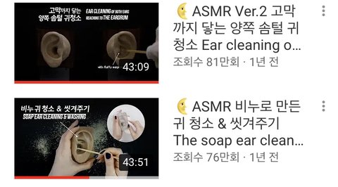 귀 청소는 이렇게 세 분 영상이 가장 좋더라ㅠㅠㅠㅠㅠ 잠 안오는 사람들 이 영상 듣고 꿀잠자길바랍니다..