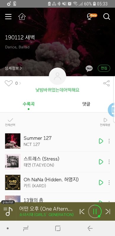 오우 힘들다 찾아듣기힘들면 멜론에 플레이리스트 만들어놓을게 말만해 진짜 저 띵곡 나만 알고 있을수가 없어 진짜