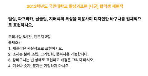 그럼 일반적 미대입시문제로 제시되는 주제들을 한번 보자