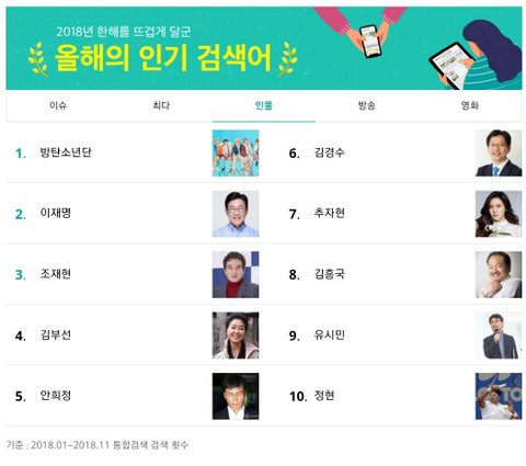 - 네이버, 다음 포털사이트 2018 검색순위 인물 1위