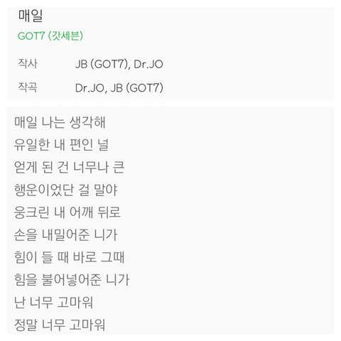 JB가 작사작곡한 2015년 겨울 리패키지앨범에 수록된 팬송 “매일”