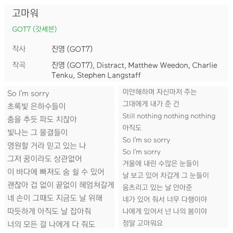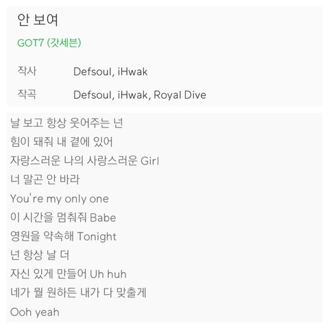 그리고 가장 최근 리패키지 앨범 Present:YOU&ME 수록곡인 “안보여”도 팬들을 위해서 JB가 만든 곡이야(Defsoul이 JB야ㅋㅋ)