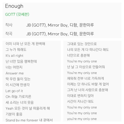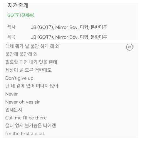 “지켜줄게”도 Enough랑 같은 앨범 수록곡이고 제목처럼 팬들을 지켜주겠다는 내용의 곡이야. 이 곡은 특이하게 JB가 처음 시도하는 뉴잭스윙장르의 곡인데 한 팬이 이 장르의 곡을 써달라고 해서 처음 써본거래ㅎㅎ (잘 모를수도 있어서 알만한 곡으로 예시를 들자면 샤이니의 1of1이 뉴잭스윙장르의 곡이야)