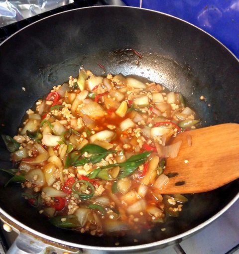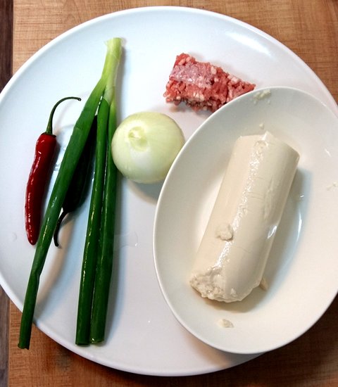 재료: 돼지고기 간거, 대파 반, 양파 작은거 한개, 홍고추 한개, 풋고추나 청양고추 한개마파소스: 두반장1큰술( 고추장으로 대체가능), 굴소스 반큰술, 간장 1큰술, 케찹 반큰술설탕 반큰술, 후추가루 약간, 참기름 약간