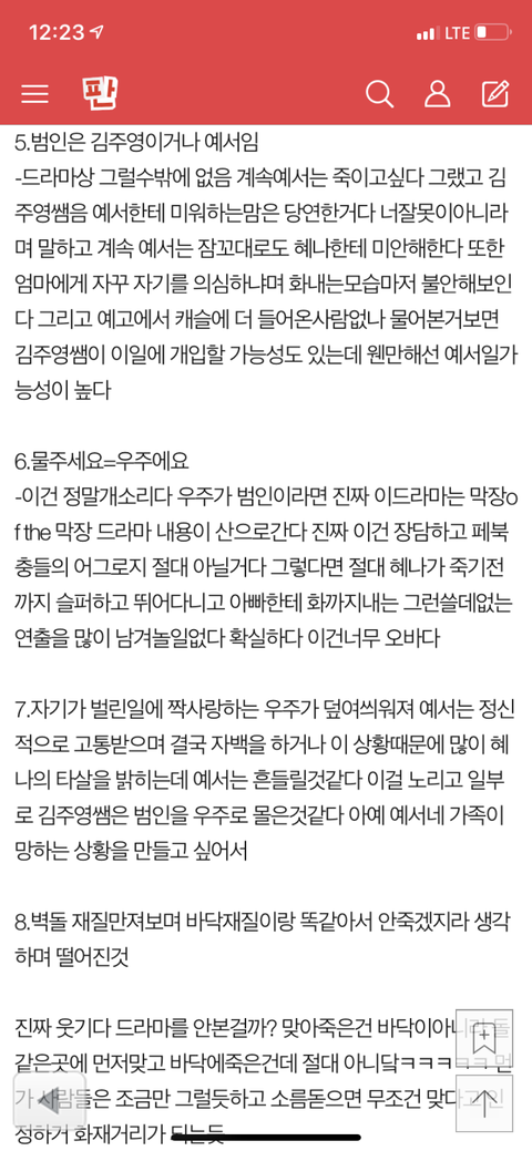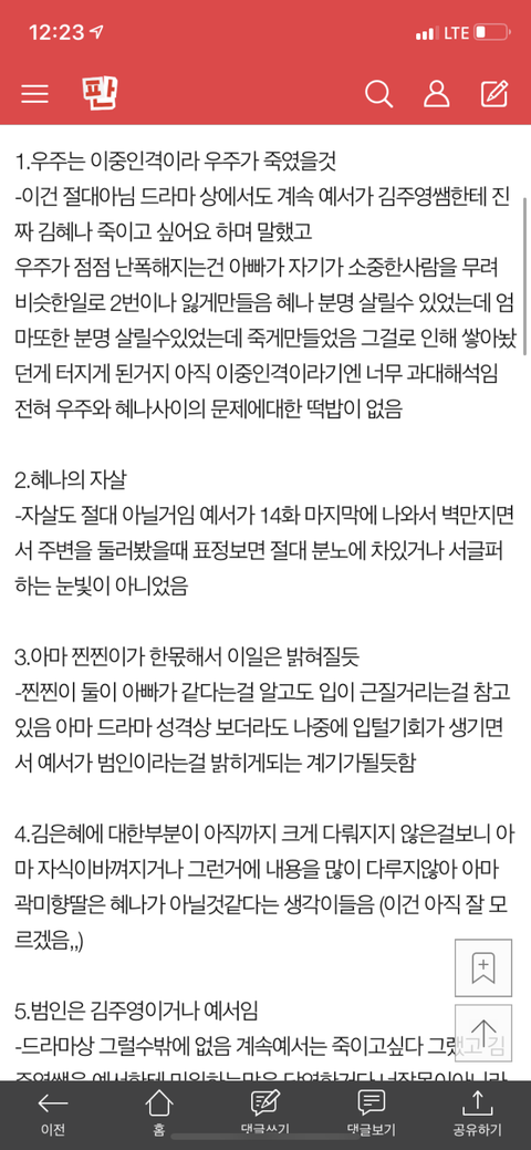 4.제발 제발 진짜 ㅜㅜㅜㅜ페북어그로궁예글에 현혹되지말자 누가봐도 드라마가주는 메세지랑 다르게 너무 말도안되게 궁예질한다 진짜 너무 멍청하다 내가 답답해 미치겠다
