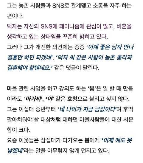 뭐 농촌으로 여자가 안와?