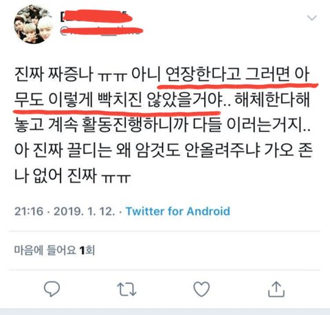잊지말자. 워너원 해체 카운트 하면서 온갖 욕이랑 조롱하던 계정주 러브인데 512일동안 그 짓하고 사과문 한장으로 계폭함ㅋㅋ 댓글 다 러브니까 소수라고 발뺌은 하지말자