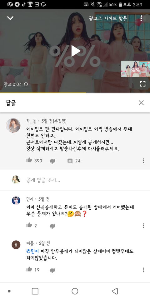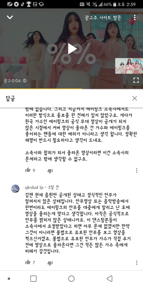 이게 논란된 이유가 에이핑크 뮤비도 1월 7일에 나왔고, 공식적인 안무 영상과 쇼케이스도 없었는데 커버댄스를 했다는 것.