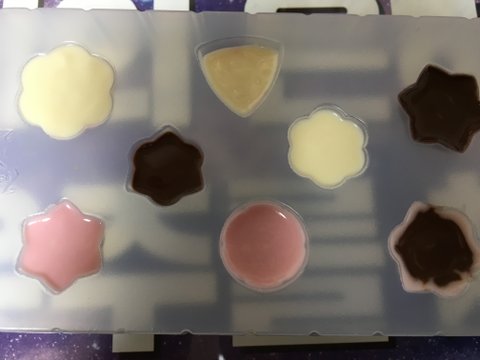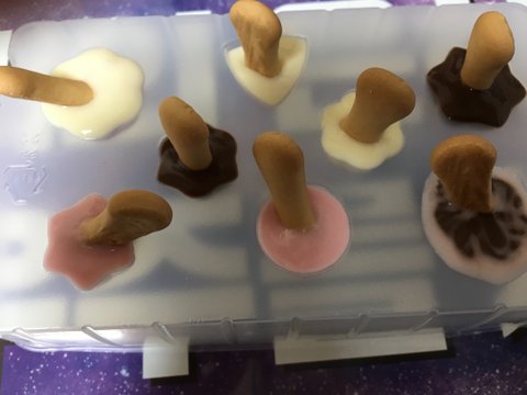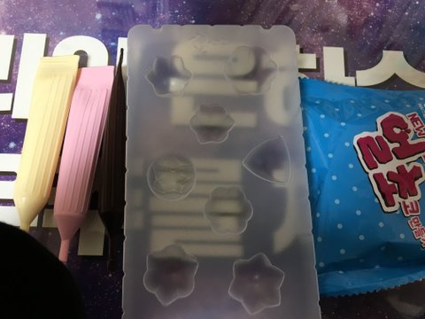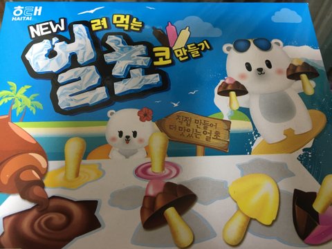 구성품은 얼초 판대기랑 3가지 초코 바닐라 딸기 맛의 초코, 개작은 과자쪼가리가 있음