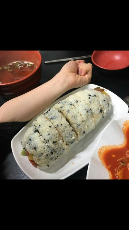 김밥은 자고로 한입에 쏙 넣고 먹는건데 칼로 잘라서 따로 먹으면 의미 없을 듯...