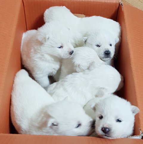 진돗개 호구와 백구의 꼬물이들 소개합니다 이제 눈떠서 처음 봤어요~ 눈이 작은게 매력적이라고 말해주세요..ㅋㅋ