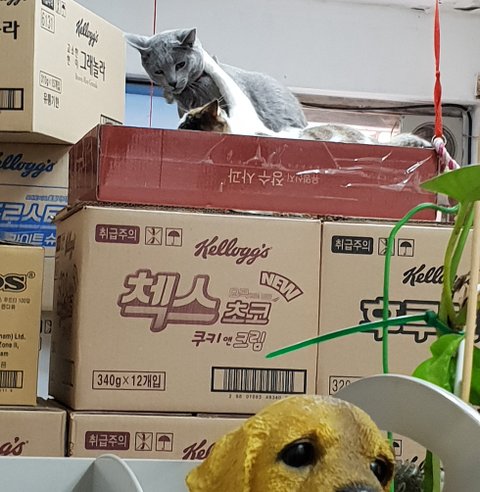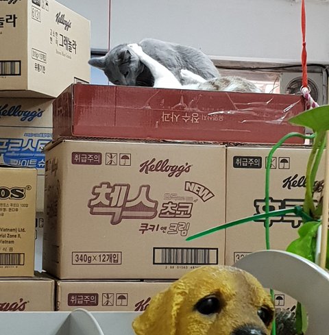흰둥이가 먼저 박스를 점령~~