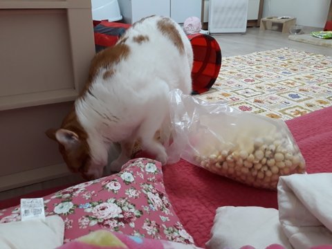 도칠이는 비닐속에만 들어가면 폭풍 '그르렁 그르렁'을 함.