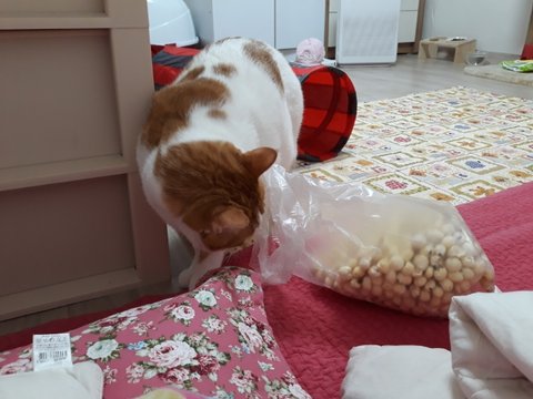 도칠이는 호기심이 많은 고양이과라 집사가 무언갈 먹을려고 하면 먼저