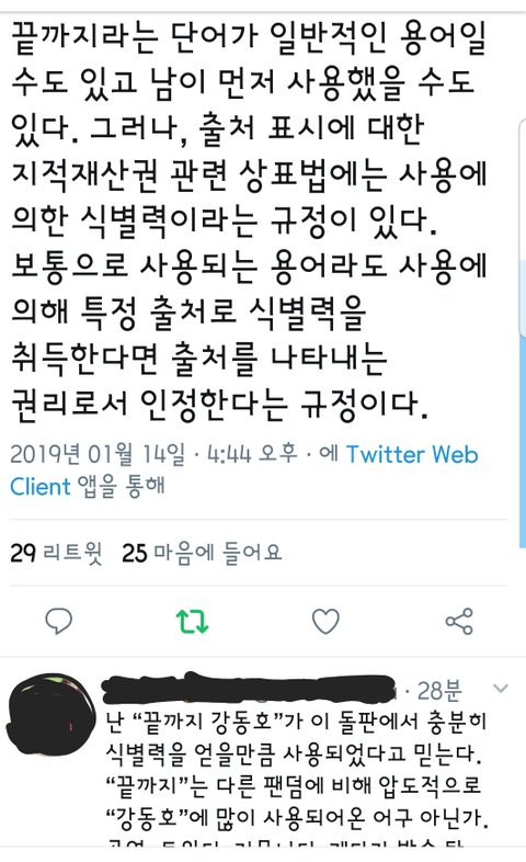 근데 식별력... 솔직히 이해가 안 돼 타팬으로서 말해보자면 밑에 예시든 거 같이 보라해= 방탄 예지앞사= 비투비 이런거 생각나는데 끝까지는 강동호 시그니쳐인줄도 몰랐어 애초에 보라해나 사랑하자 같이 새로 만들어낸 말도 아니고... 끝까지 화이팅 같이 응용도 많이 되는 말인데 ㅋㅋㅋ