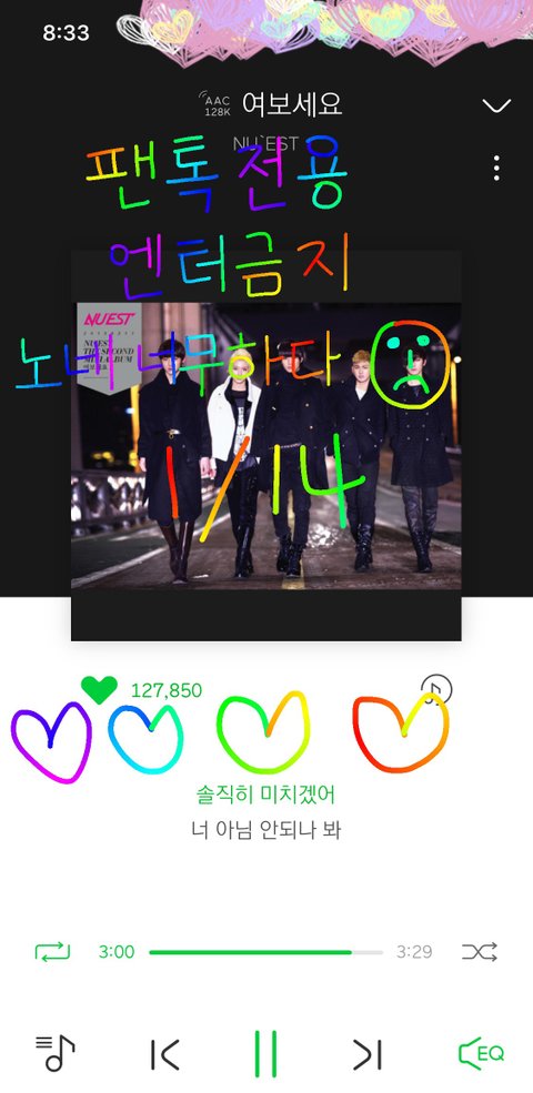 어떻게 글을 아무도 안 쓰냐 하루종일 심심해 죽겠다 댓글이라도 써✊ 이따 놀이터 열면 그 때는 많이 올 거지? 나 혼자 기다리고 있을게 롬곡☹️ 혐생 남은 브야들 ㅎㅇㅌㅎㅇㅌ