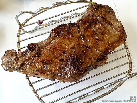 고기가 다 구워지면 육즙이 고기 내부에 골고루 퍼질 수 있도록 랙 위에 올려 레스팅을 합니다.