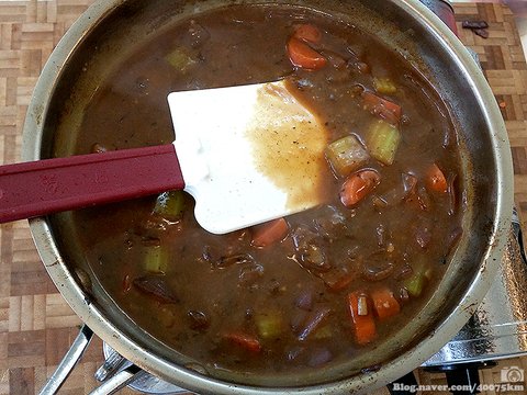 뜨거운 루를 뜨거운 국물에 넣으면 부글부글 끓어오르면서 사방에 다 튀고, 차가운 루를 차가운 국물에 넣으면 멍물이 지면서 잘 섞이지 않거든요.