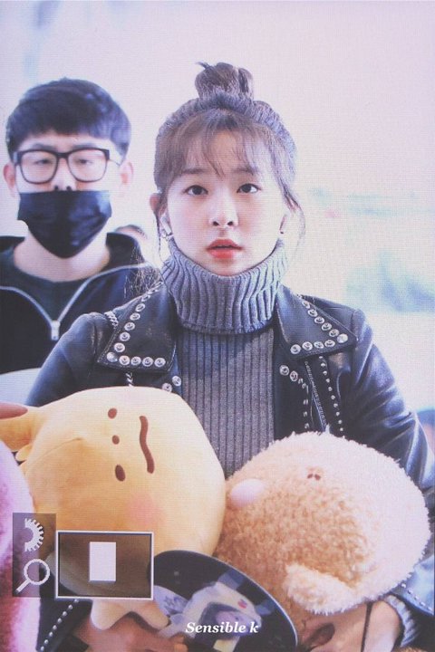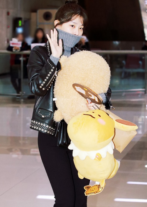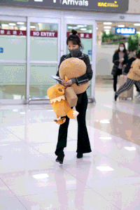 자신만한 곰인형을 들고 입국한 곰슬기