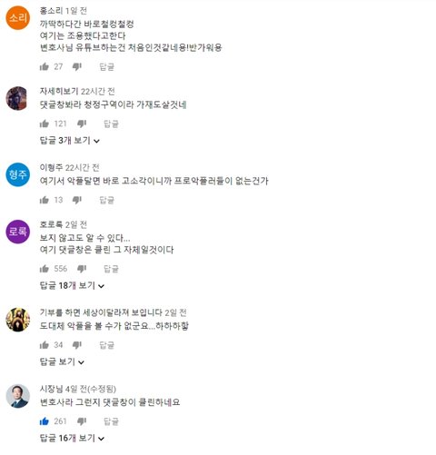변호사가 운영하는 유튜브채널인데 댓글창 클린 그자체