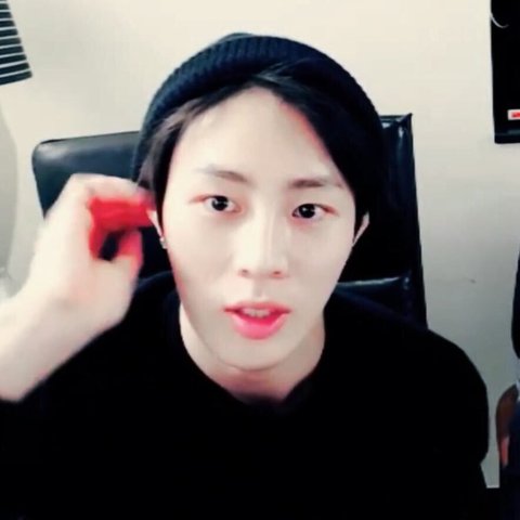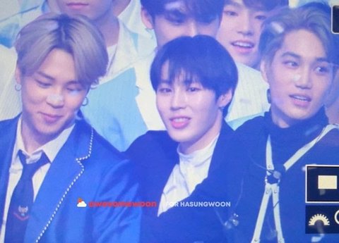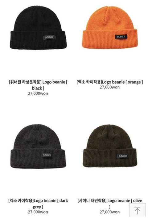 같은 브랜드, 같은 디자인의 비니를 착용한 하성운, 카이, 태민