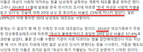 여성이 불평등하다' 2년만에 57% -> 23%로 감소