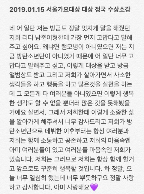 오늘 정국이 수상소감 감동이다ㅠㅠㅠㅠㅠ