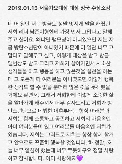 하 겁나 멋진 우리 가수 오늘 소감 평생 안잊는다 ㅠㅠㅠㅠㅠ