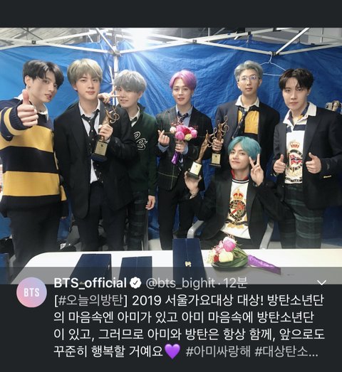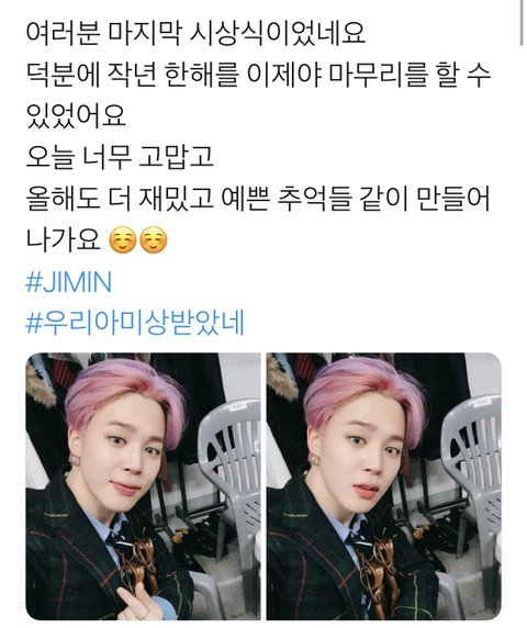 우리 하던거나 열심히 하자 우리끼리 같이 행복하자 이런 생각 들어서 그런지 왤케 공감됐는지 몰라 ㅋ 지난 활동 vcr 도 착장도 소감도 백퍼 이해한것도 아니면서 몽글했고 좋았어 추억만큼 앞으로 남은 길도 길다고 생각해 다들 같이 쭉 방탄꽃길걷자♥️