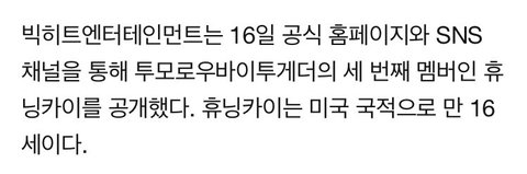 세번째로 공개된 멤버이자 팀 막내인 휴닝카이! 이제 18살이야... 약간 외국인 모델삘이 나는 것 같기도 하다