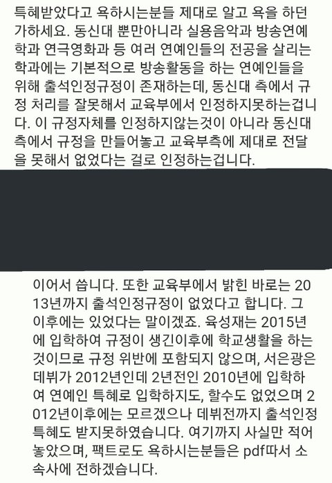 육성재: 2015년 대학입학 > 육성재 입학 당시에는 교육부에서도 인정해주는 규정이 존재했다.