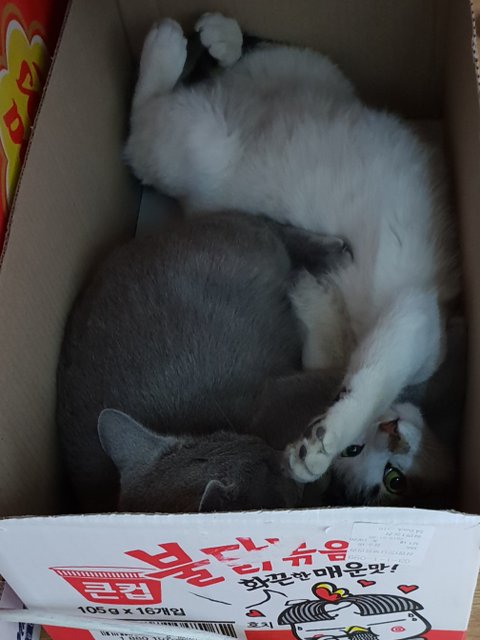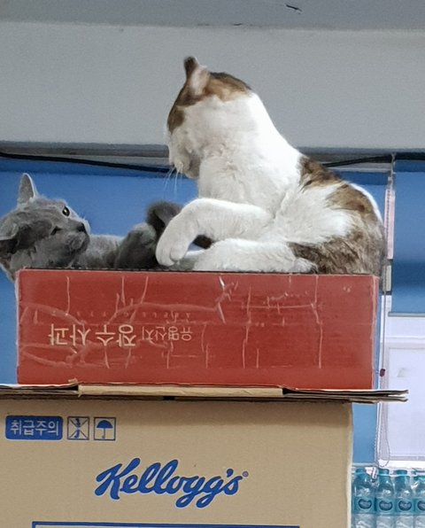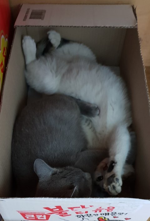 다시 깨웟더니 -_-)* 박스위에가서 자리 싸움하느라 치고 박고~