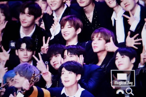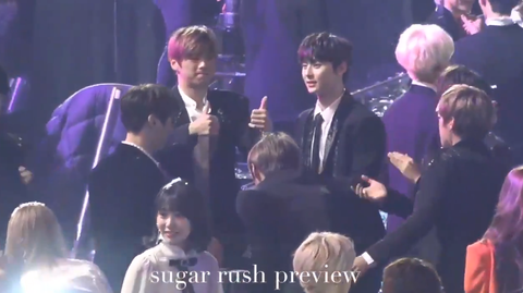 시상식 참석한 다른 가수들과 사진 찍는데